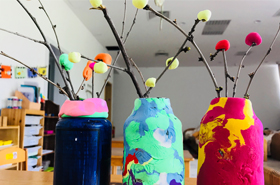三月环保月,孩子们通过巧虎分垃圾的游戏认识到,垃圾分类、以及随手丢垃圾给我们的环境带来很多危害。在家长朋友的配合下,收集了我们生活中的可回收材料,并利用可回收材料进行创作。