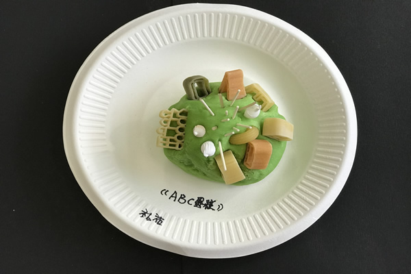 幼儿选择自己喜欢的彩色面团和各种形状的意面。小朋友们在面团上面进行创作,面团在小朋友手中捏一捏、团一团,变成了各种各样的形状。用形状把意面变成了多种多样的,用小树枝装饰小面团,把小面团变成幼儿心中的作品。