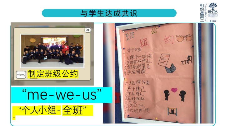 在制定班级制度方面,胡老师本着对学生尊重和鼓励的态度,通过“发放班级福利”、评选“每周闪亮之星”等活动,让学生真正成为班级的小主人并主动承担班级责任。在这个过程中,学生的学习、生活、纪律及人际等方面都得到了锻炼和提升。